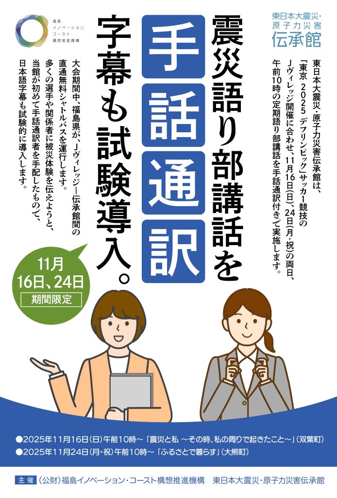 【イベント情報_11月】東日本大震災・原子力伝承館/震災語り部講話に手話。字幕も試験導入 2025.11.06