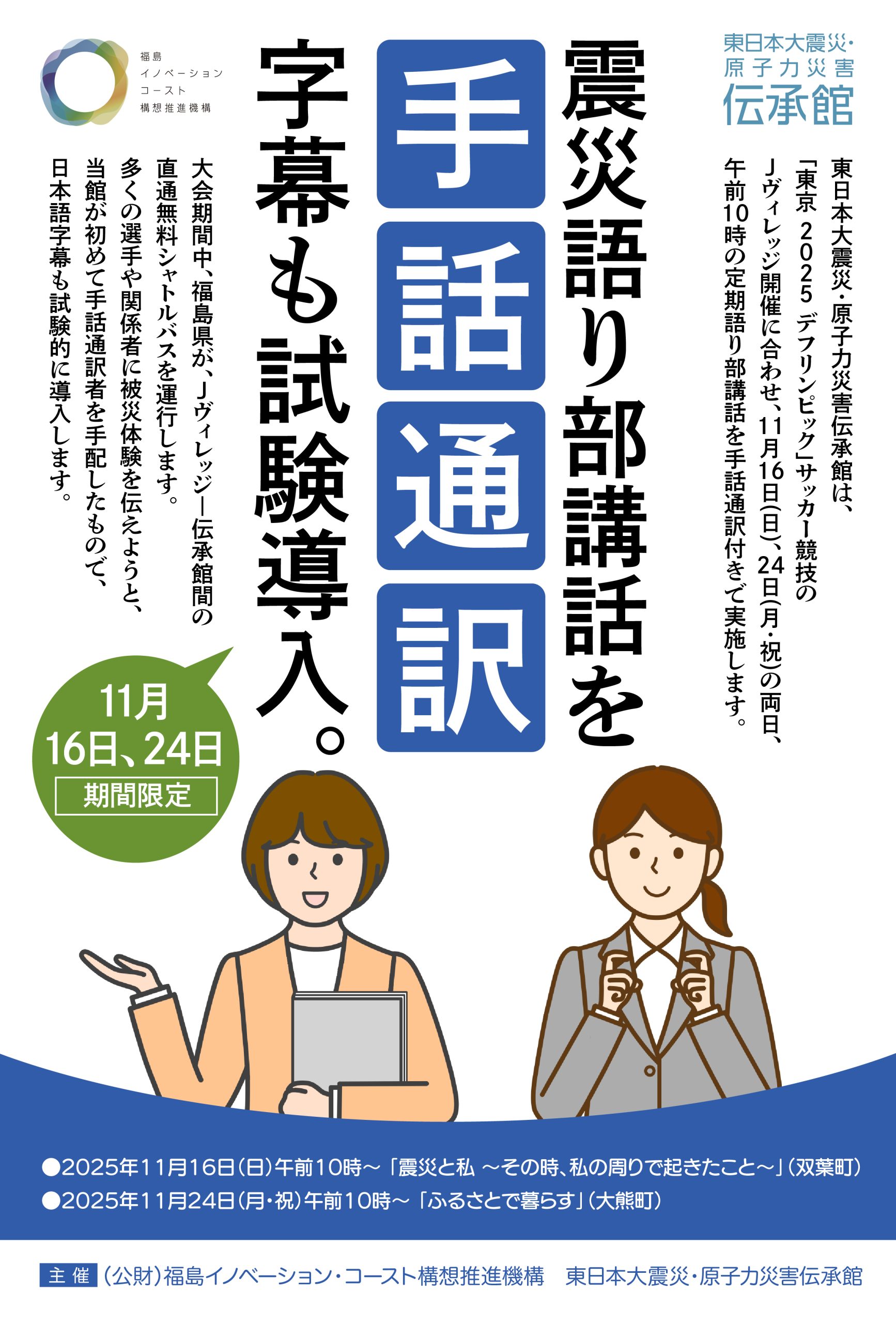 【イベント情報_11月】東日本大震災・原子力伝承館/震災語り部講話に手話。字幕も試験導入 2025.11.06