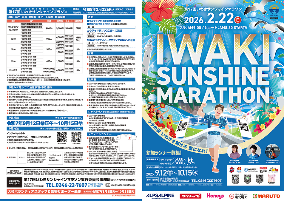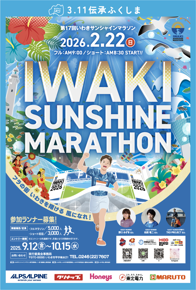 令和8年2月22日(日)に第17回いわきサンシャインマラソンが開催されます。
