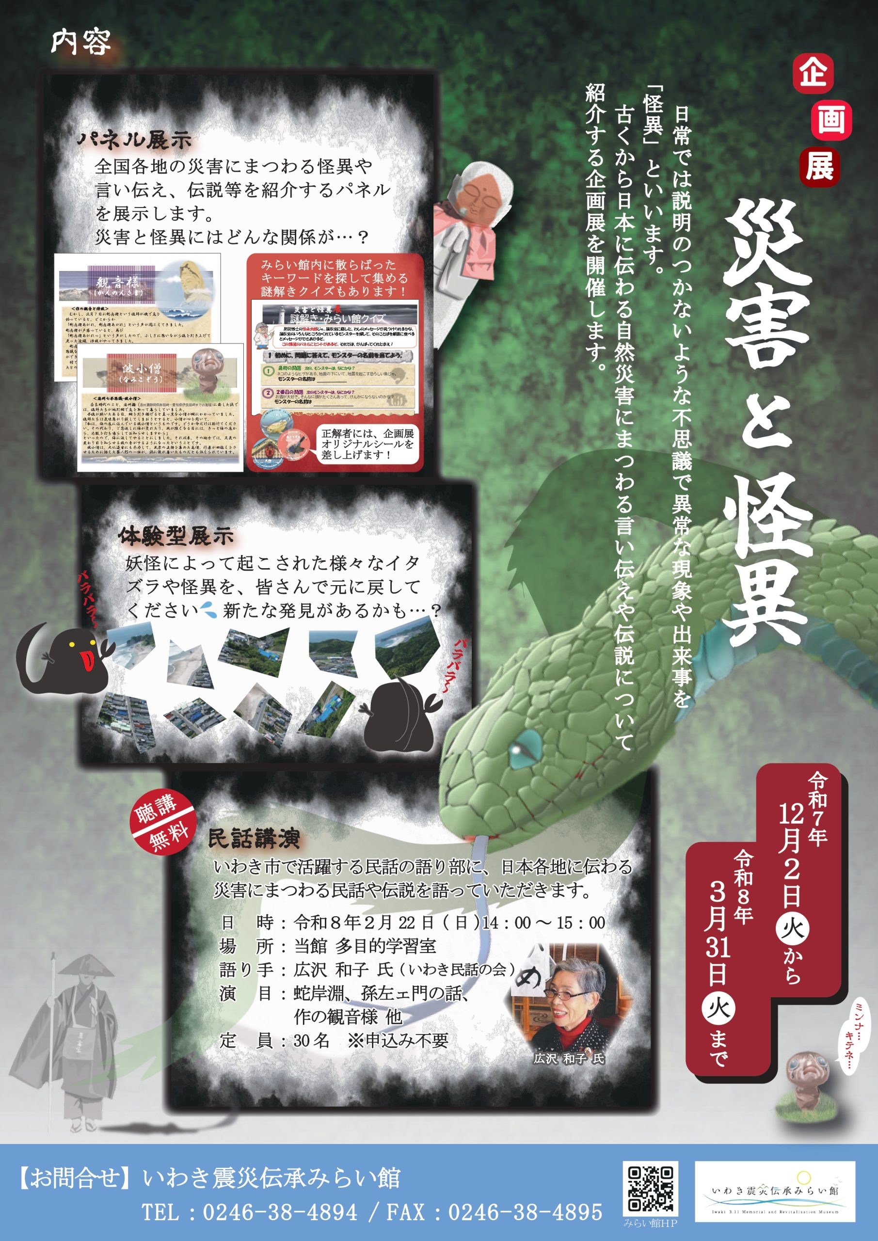 【イベント情報_3月】 いわき震災伝承みらい館の企画展として、「災害と怪異」を開催中です。 2026.03.06